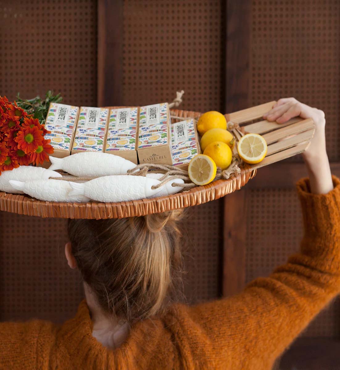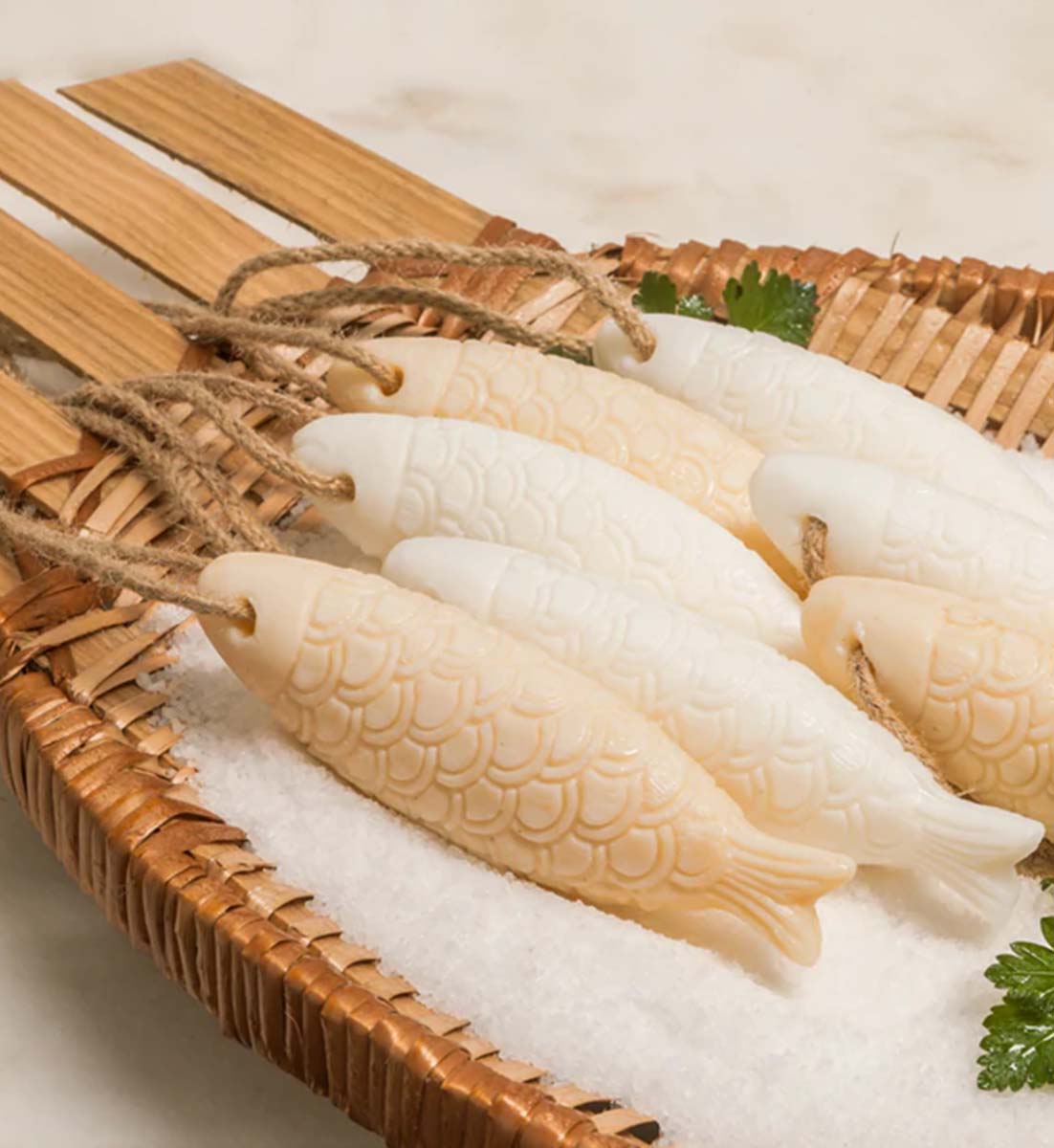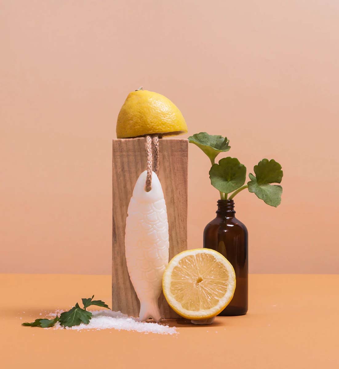 Diese frisch duftende Sardinenseife enthält pulverisierten Rosmarin oder Meeressalz und wurde speziell entwickelt, um unangenehme Gerüche – wie Knoblauch oder Fischgeruch – von den Händen zu entfernen.