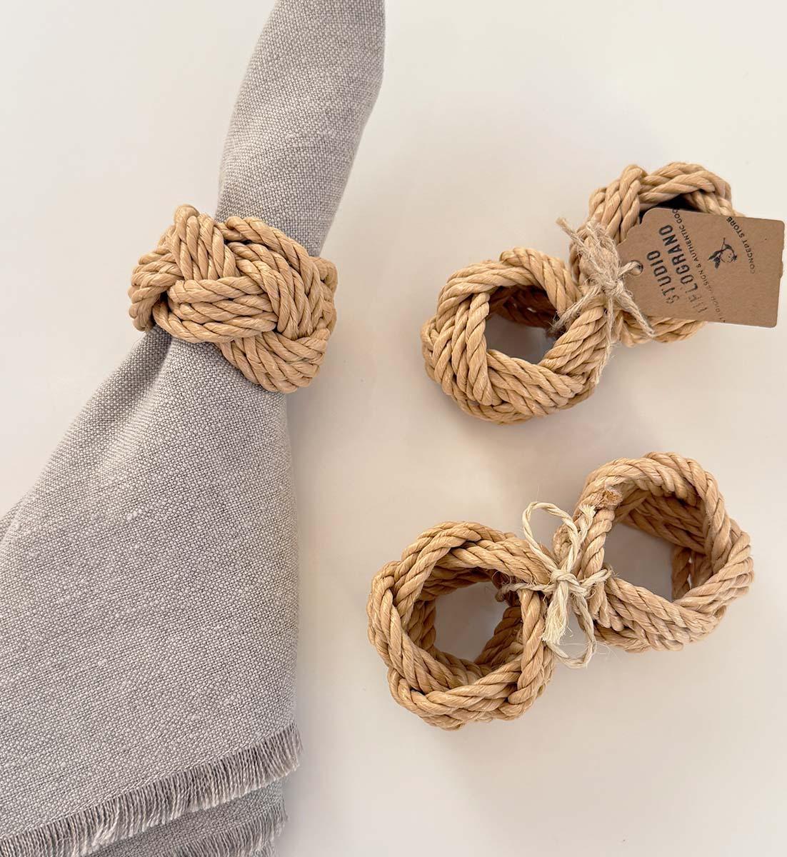 Handgefertigte Serviettenringe aus Seegras von Studio Melograno