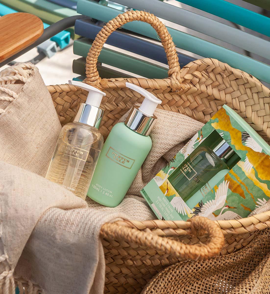 Egal, ob zu Hause, im Fitnessstudio oder auf Reisen, das Reiseset pflegt deine Haut und hüllt sie in einen zarten Duft aus Yuzu, Vetiver und Mandarine.