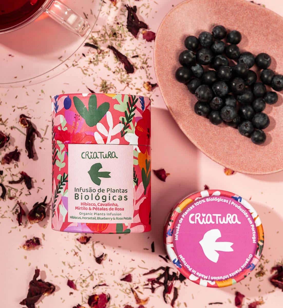 Teemischungen aus Bio-Pflanzen und -Obst von kleinen portugiesischen Bauern, für die es schwierig ist, ihre Produkte auf grossen Märkten zu verkaufen, da sie nicht der Norm (Grösse, Form etc.) entsprechen.
