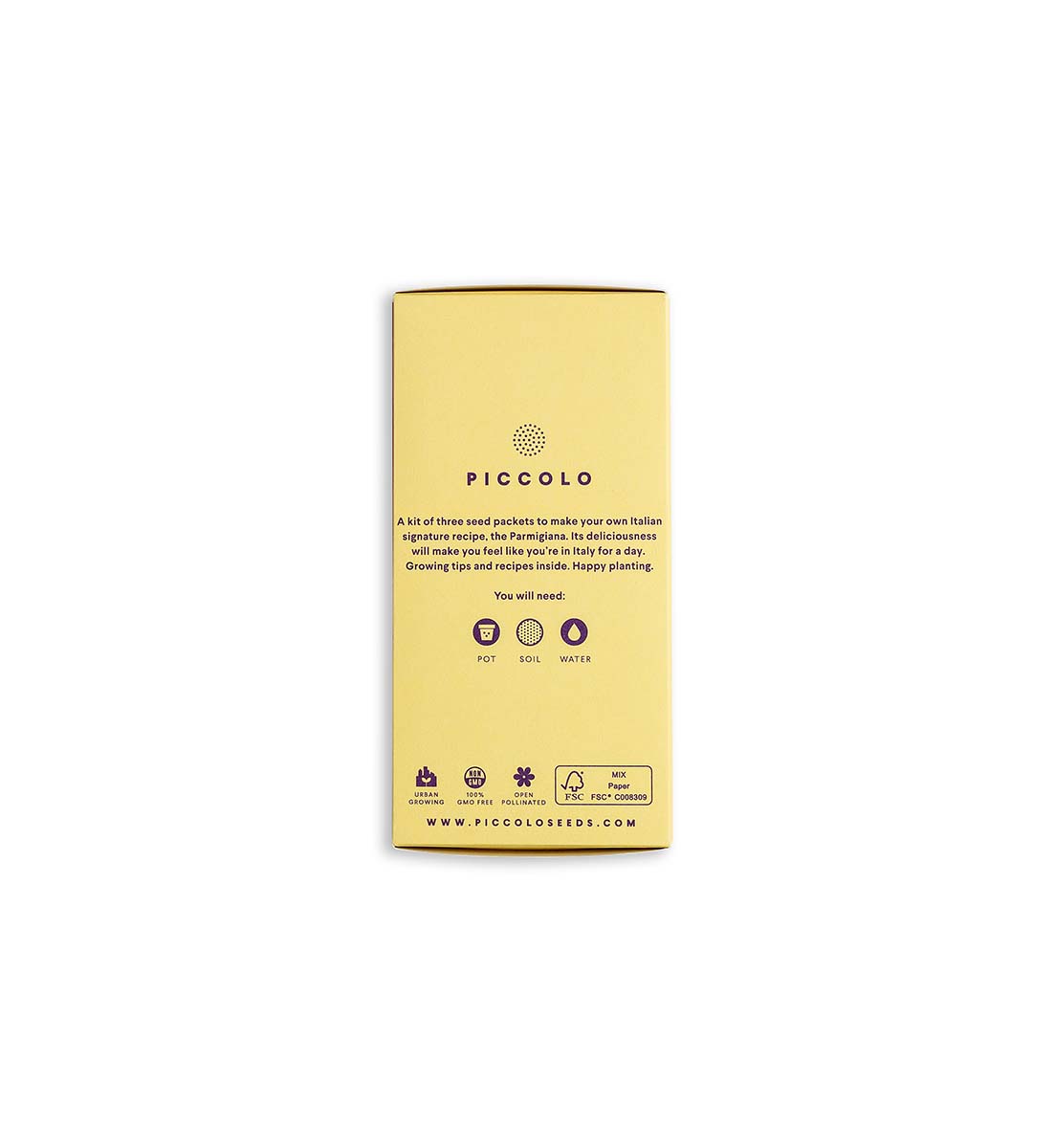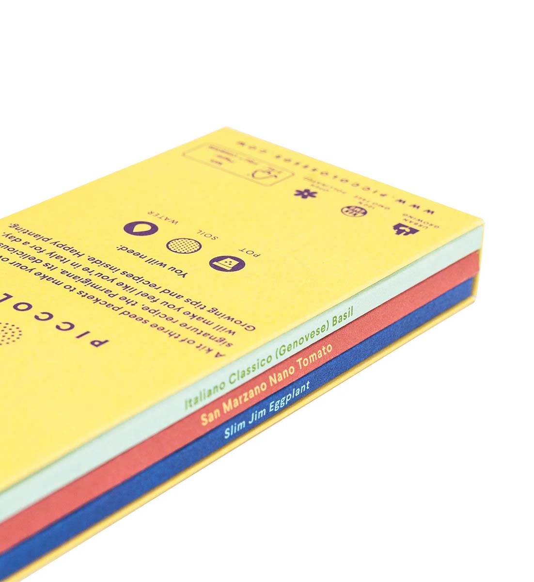 Die raffiniert zusammengestellten Saatgutpackungen wurden für den unkomplizierten Anbau auf kleinem Raum entwickelt und enthalten auf der Innenseite jeder Karte eine leicht verständliche, detaillierte Anleitung. Die Parmigiana Aubergine Kollektion aus der Piccolo Saatgut-Reihe beinhaltet drei diverse Gemüsesorten. Mini-Aubergine Slim Jim, San Marzano Nano Tomaten und Genovese Classico Basilikum.