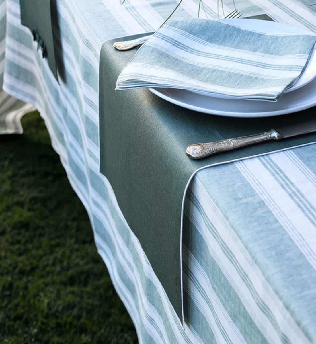 Tischläufer aus der CORDONCINO-Kollektion mit einem Kordelzug am Saum Ihrer Wahl. Sie ermöglicht es uns, einen außergewöhnlichen und einzigartigen Tisch zu schaffen.