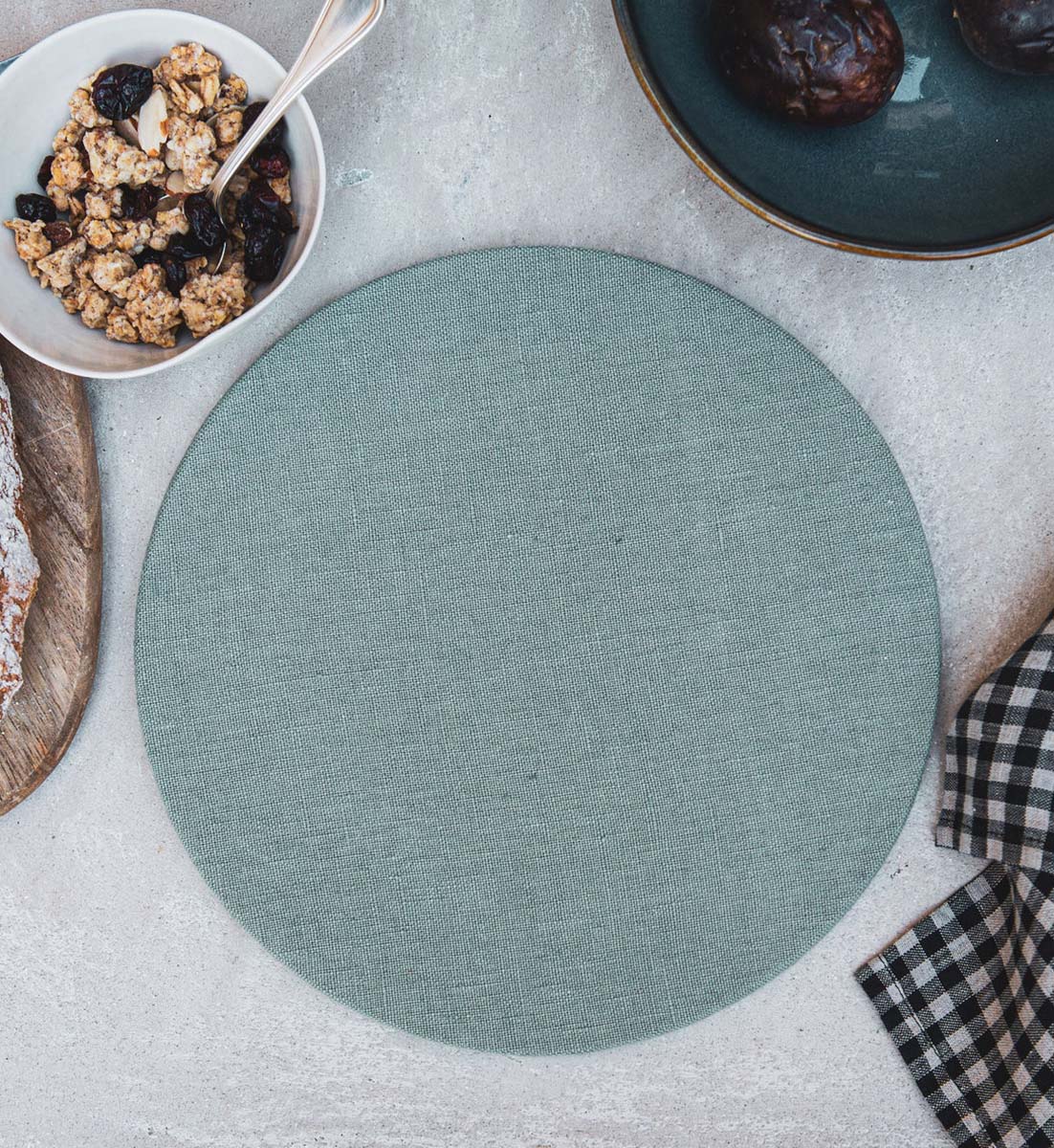 Rundes Tischset mit einem abnehmbaren Leinenbezug. Eine schöne Art, die Textur der Leinen auf den gedeckten Tisch zu präsentieren. Sie werden von erfahrenen Handwerkern aus Venetien von Hand zugeschnitten, genäht und schließlich in leuchtenden und saisonalen Farben gefärbt. Der runde Holzträger ist separat erhältlich.
