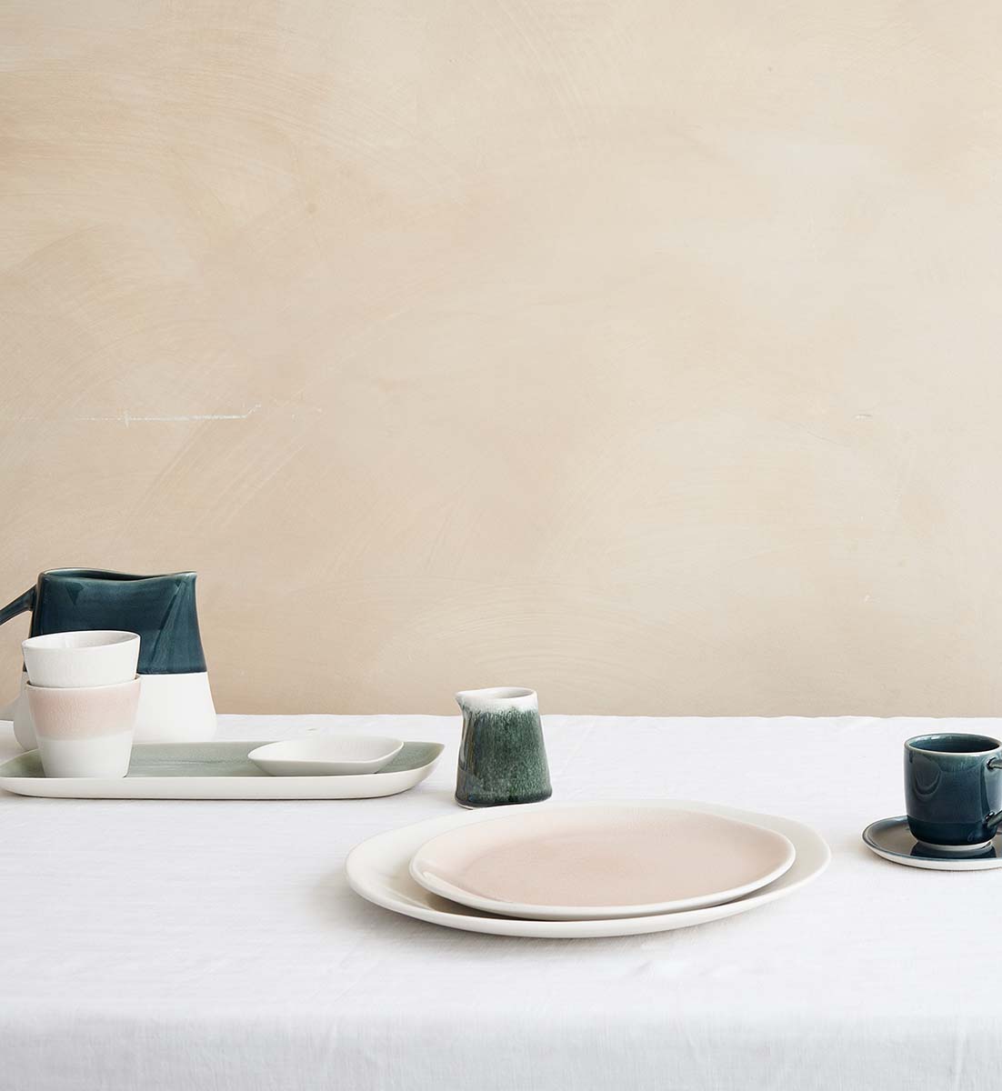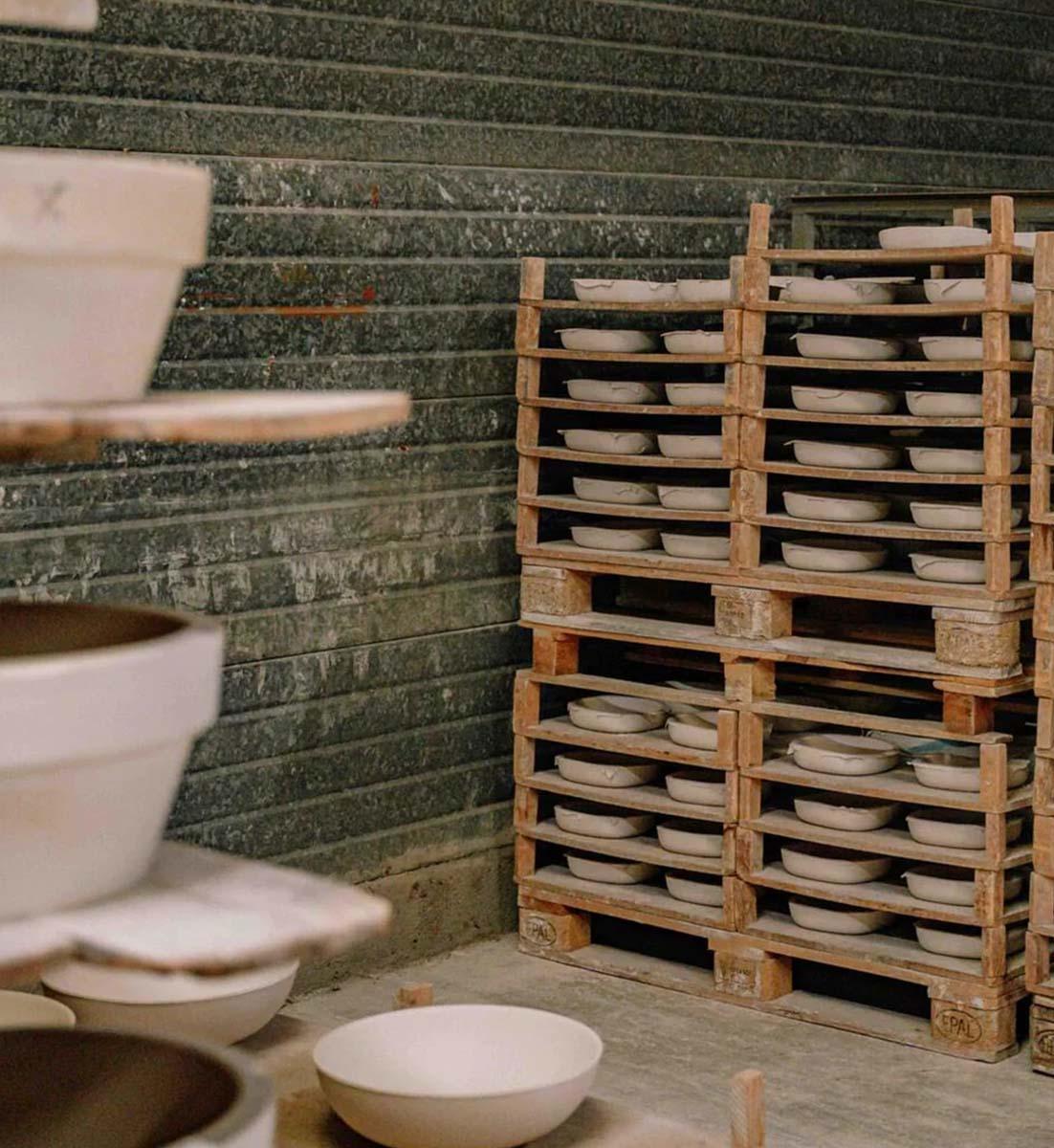 Jedes Stück wird mit grösster Sorgfalt von Hand hergestellt – vom Formen über das Glasieren bis hin zum Brennen. Die besondere Steinzeugmasse und die eigens entwickelten Glasuren verleihen den Kollektionen ihre unverwechselbare Haptik und Farbnuancen. Keine zwei Stücke gleichen einander – jedes Produkt trägt die individuelle Handschrift des Handwerkers, der es geschaffen hat.