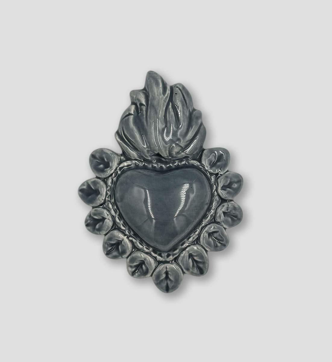 Jedes Herz wird von Hand geformt und glasiert, wodurch kleine Unregelmässigkeiten entstehen, die jedes Stück einzigartig machen. Ob als ausdrucksstarkes Wandobjekt, persönlicher Talisman oder besonderes Geschenk, dieses Ex Voto verbindet spirituelle Tradition mit zeitloser Ästhetik.