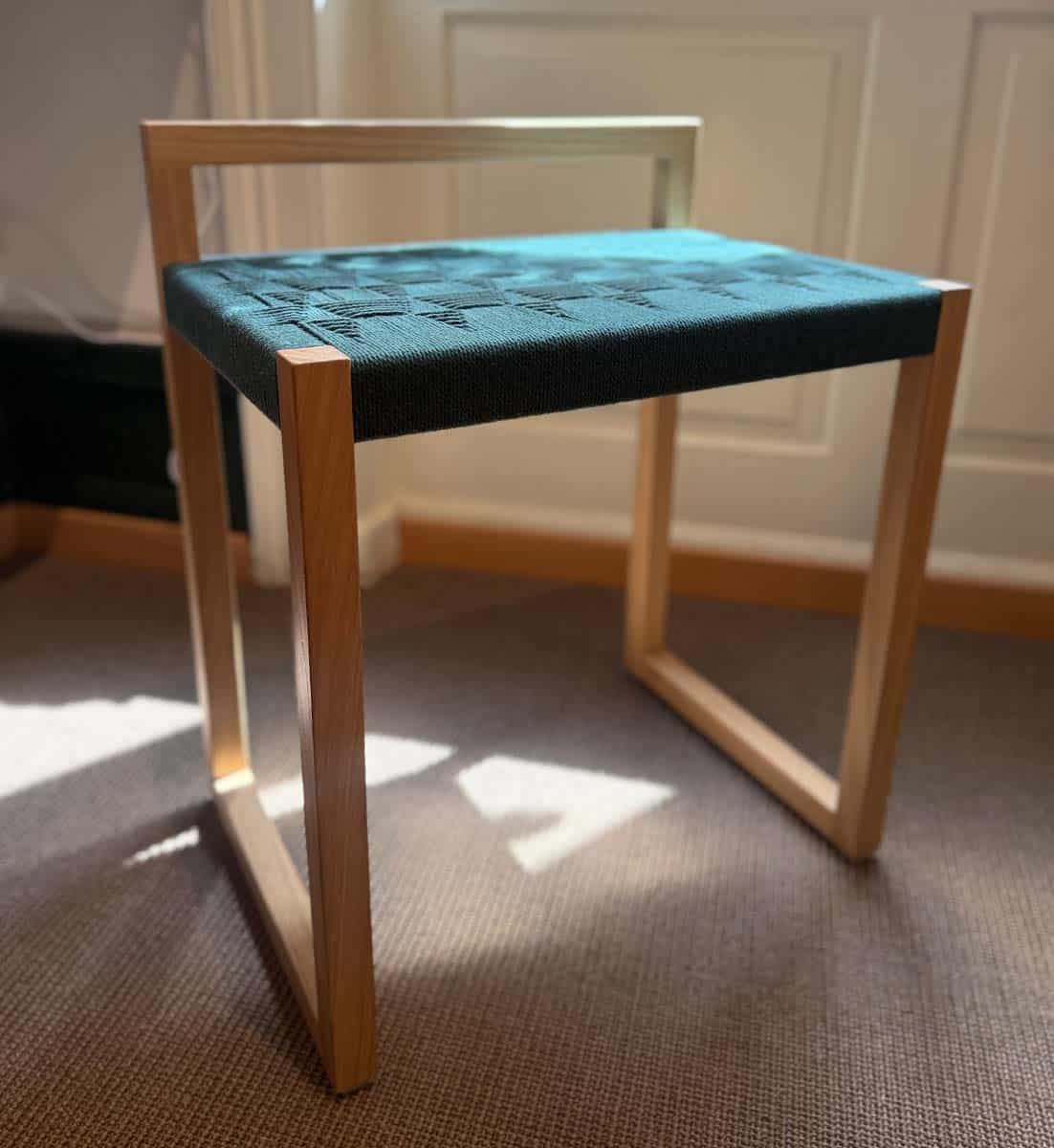 Jeder Hocker ist ein handgefertigtes Unikat – geflochten aus ausgewähltem Holz und hochwertigen Bio-Baumwollschnüren.