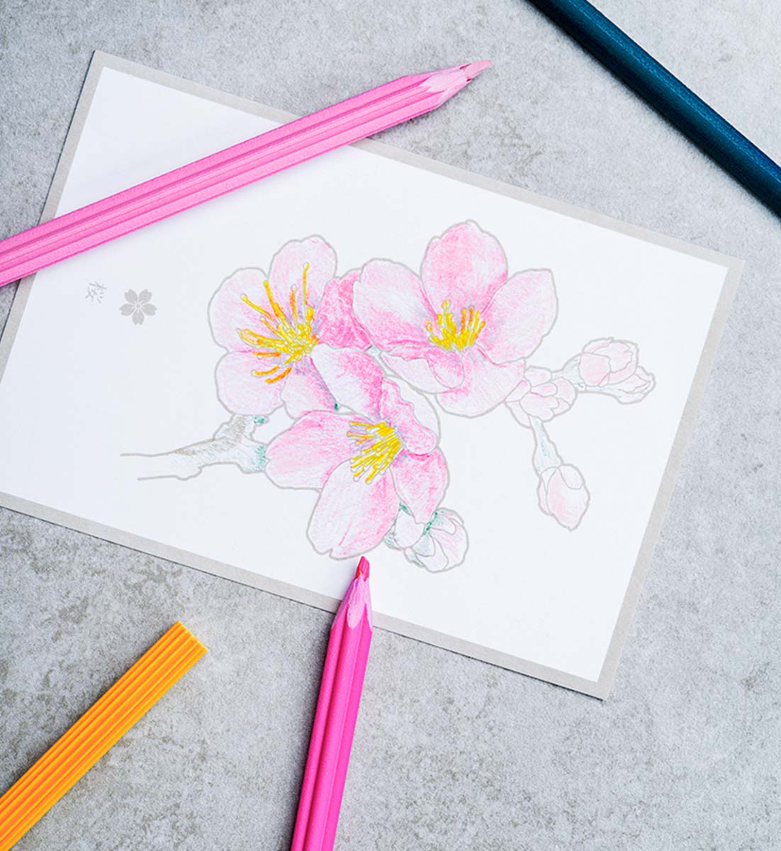 Japanische Nationalblumen als Set aus 5 Farbstiften.