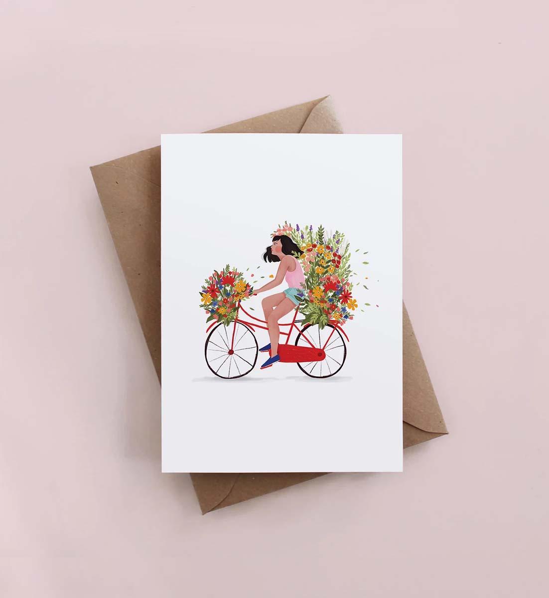 Der Frühling kann kommen! Witzige Faltkarte A6 für blumige Grüsse.