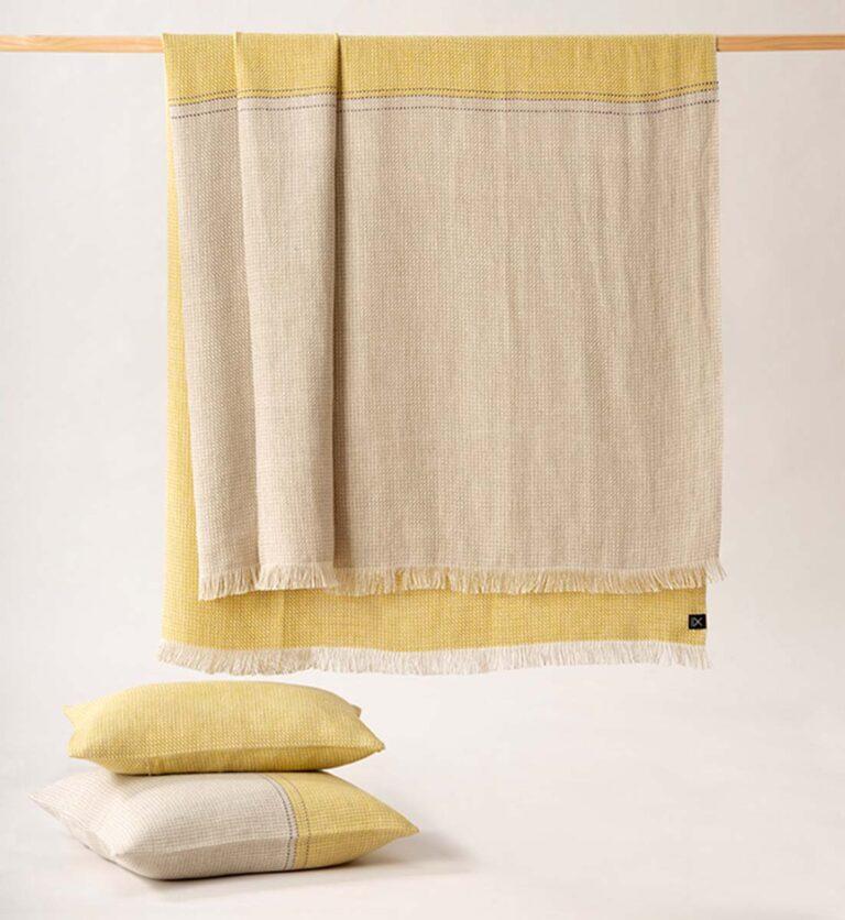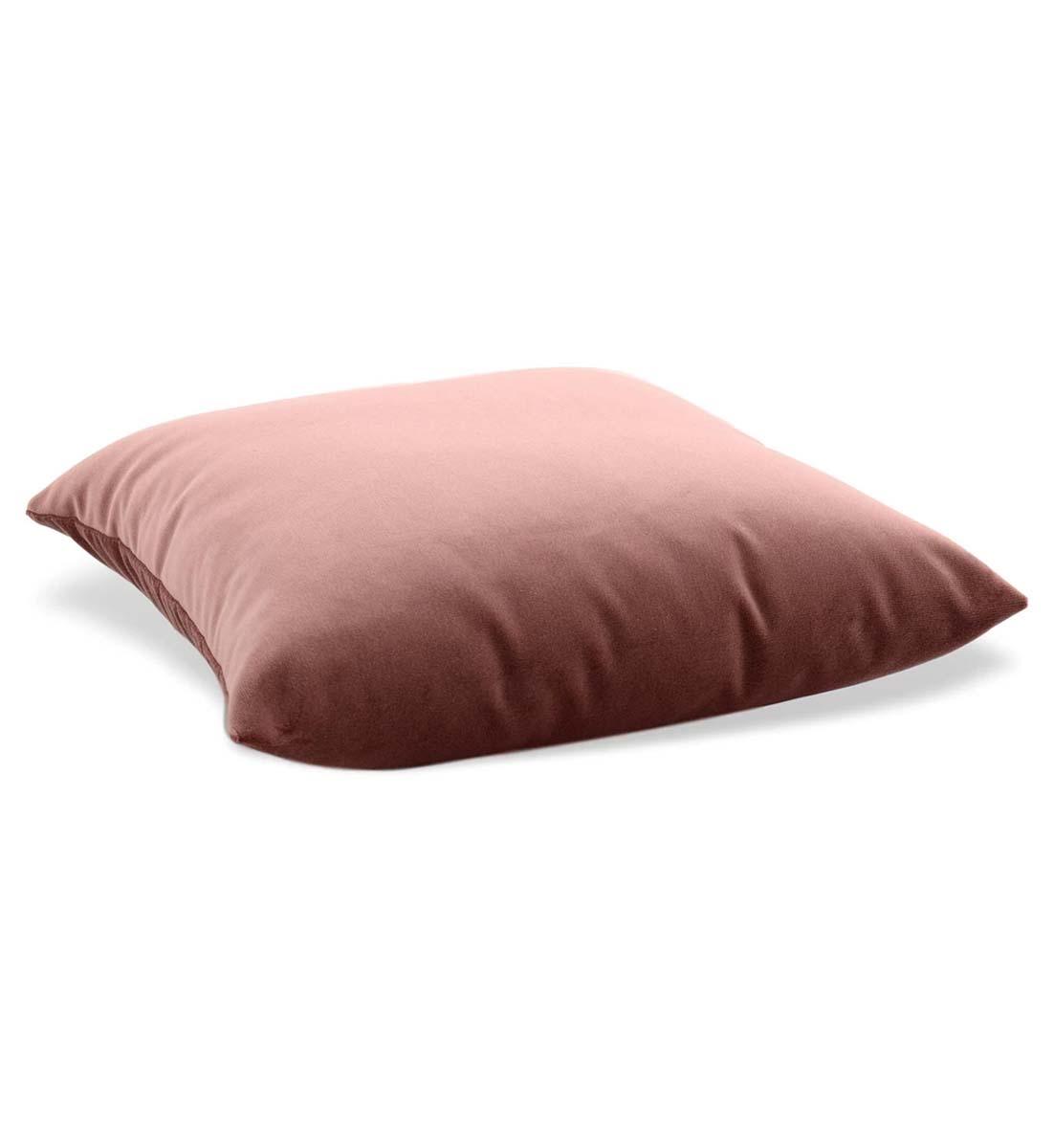 Quadratisches Zierkissen aus weichem Baumwollsamt für sommerliche Innenräume.