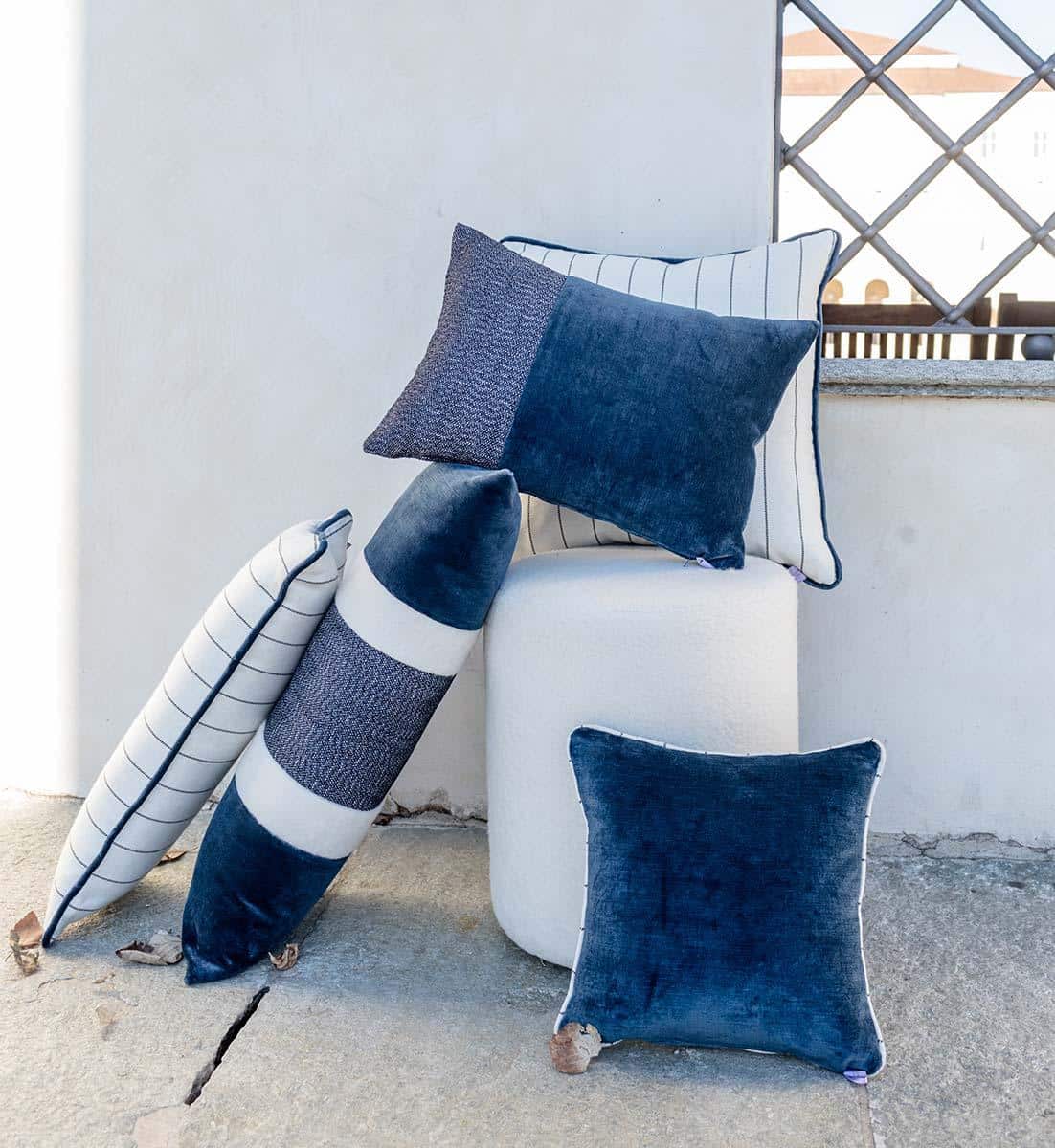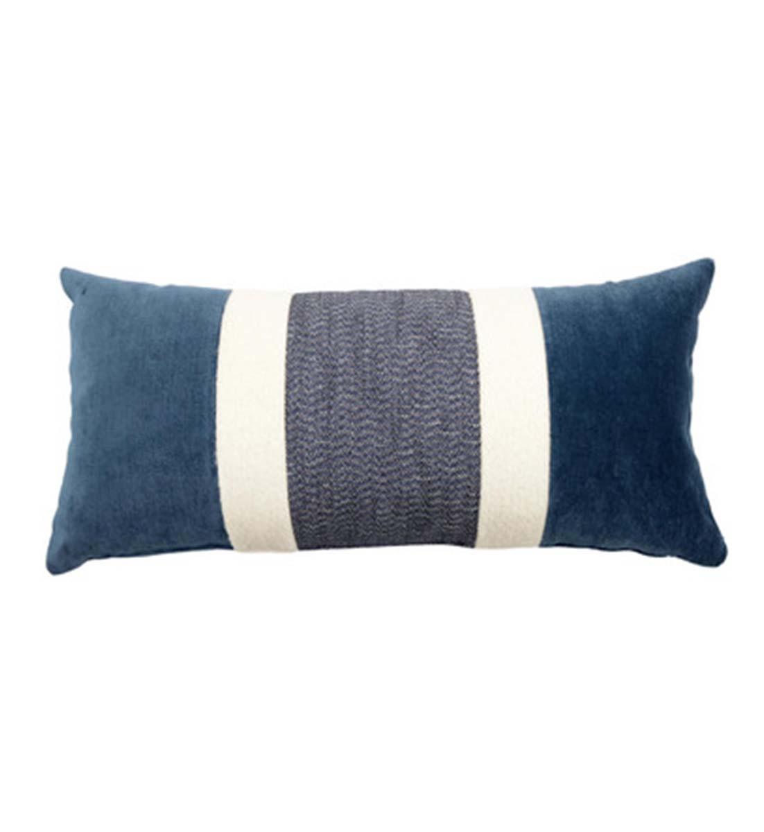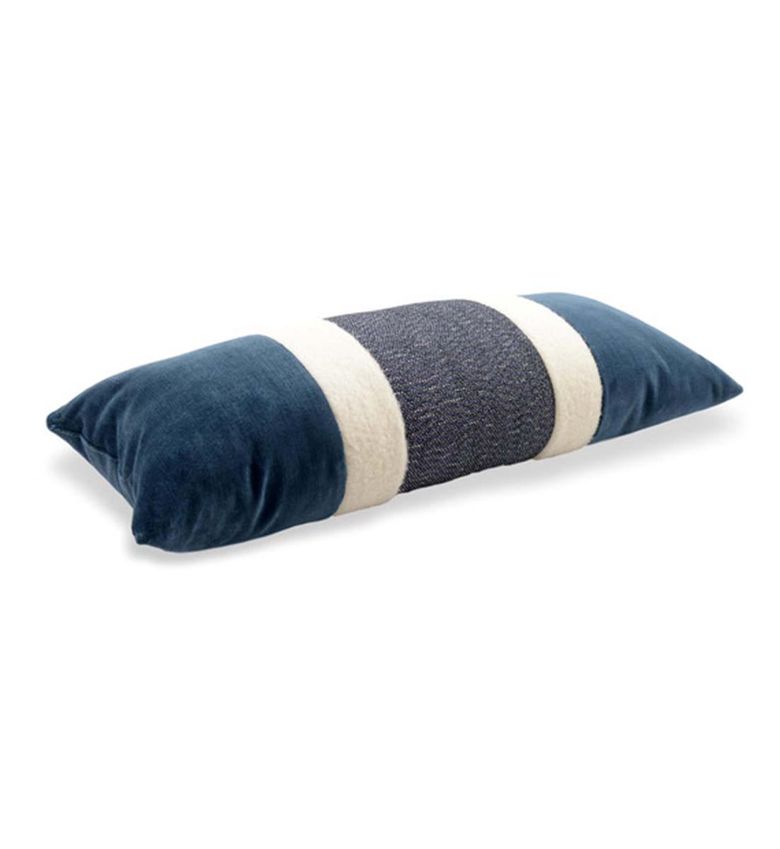 Rechteckiges Zierkissen aus Leinen- und Alpakasamt mit einem Mittelstreifen aus Faux-Jacquard-Stoff, ein Farbakzent für Ihr Sofa.