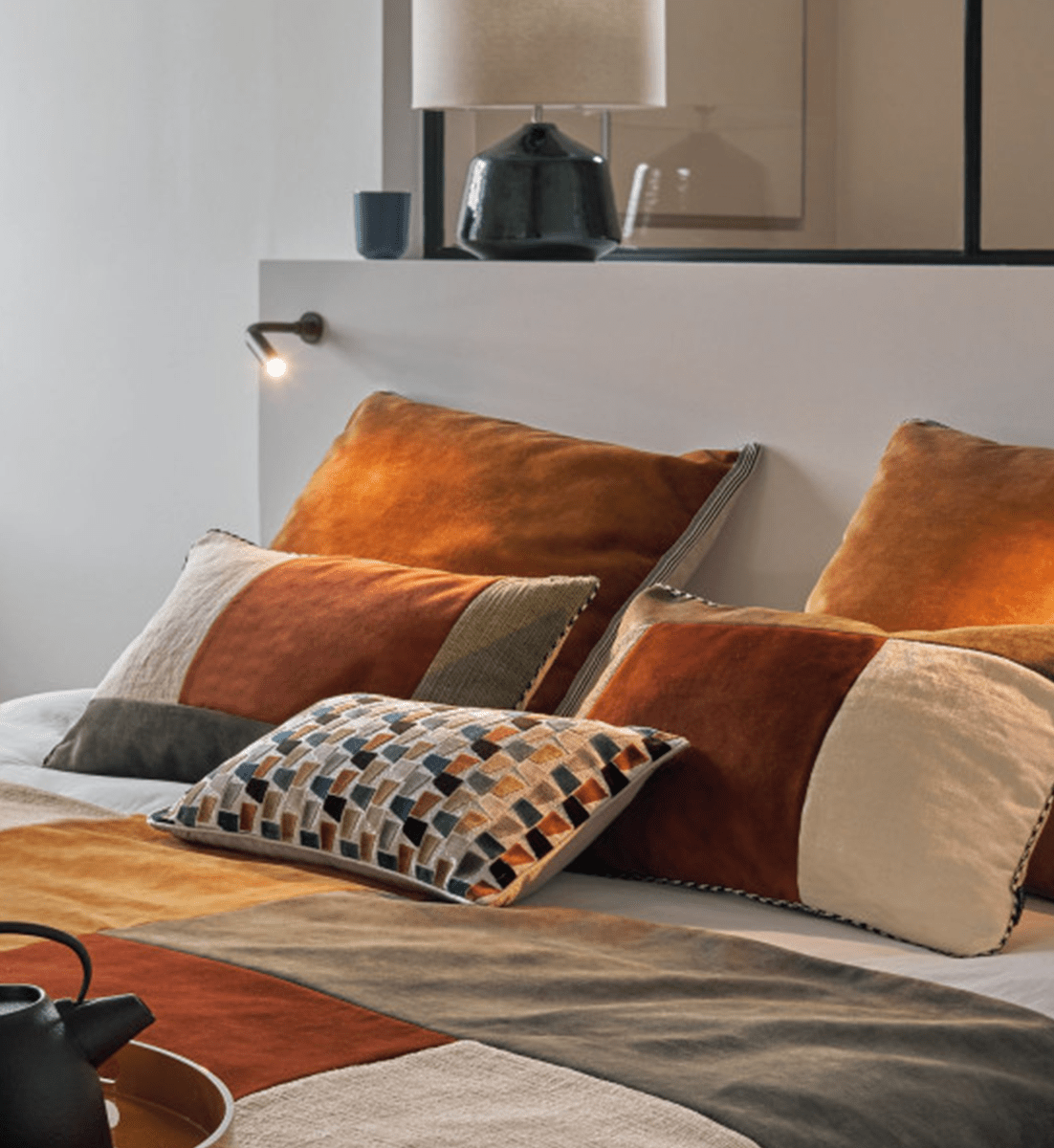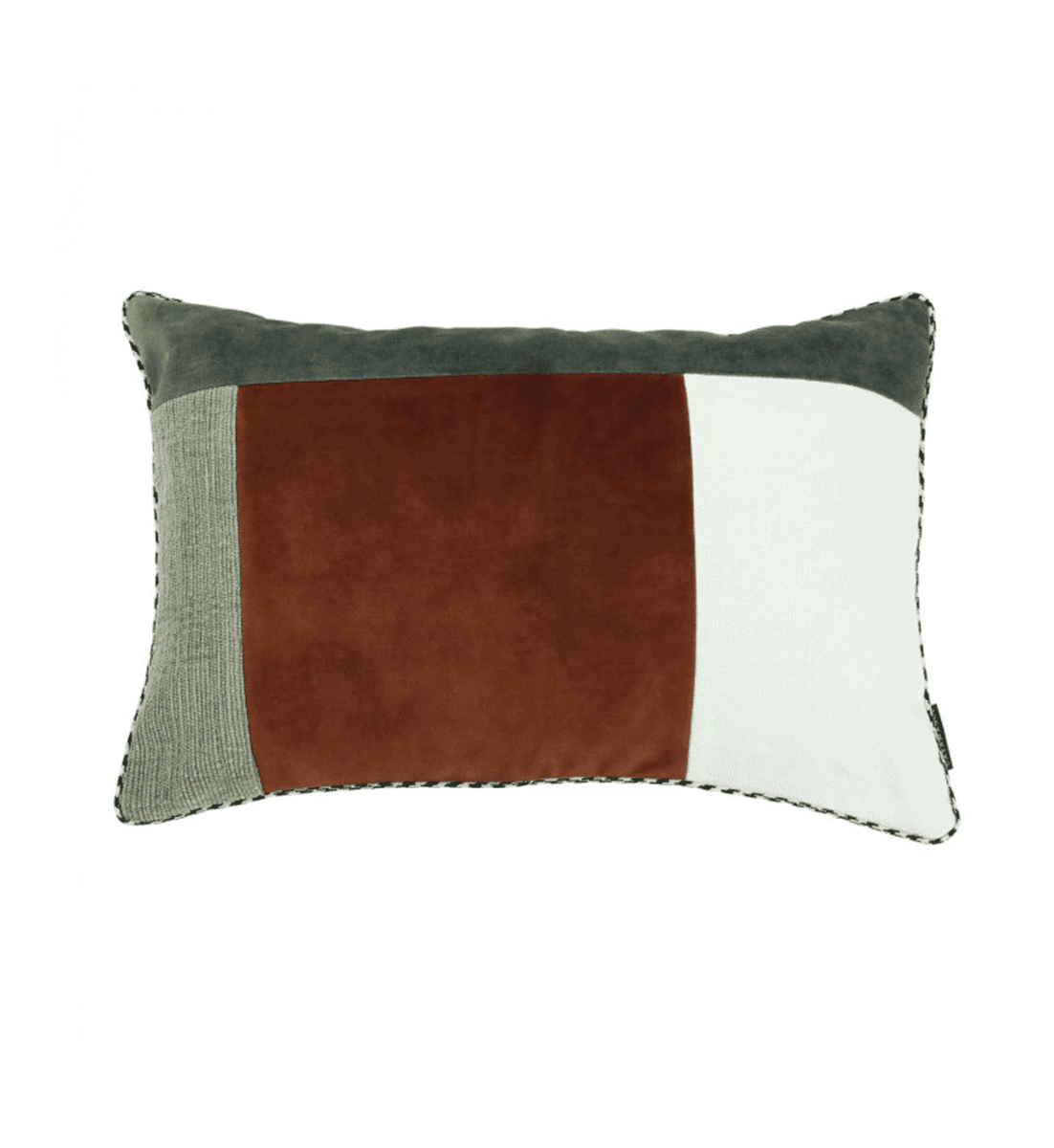 Vorderseite: Patchwork aus Samt, Leinen und geripptem Stoff mit Vintage-Effekt