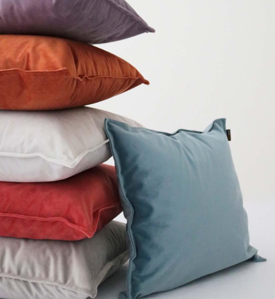 Weiche Velourkissen erhältlich in verschiedenen Farben.