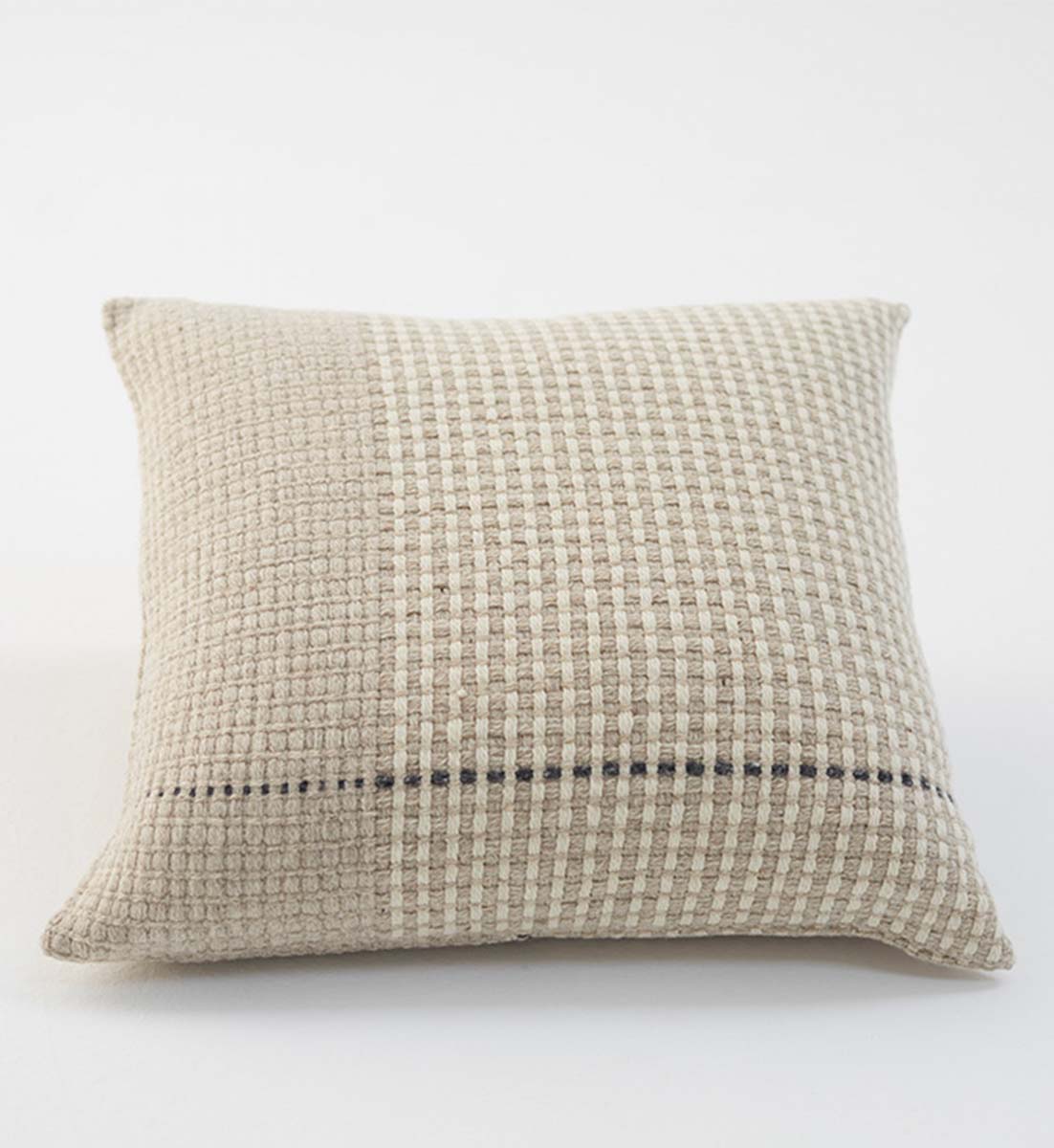 Diese Kissenhülle aus ökologischer Wolle mit grosszügigen Massen, das in jedem seiner Details bewährte Texturen aufweist.