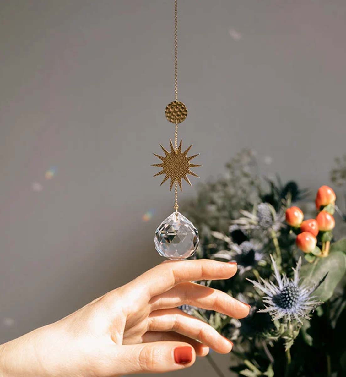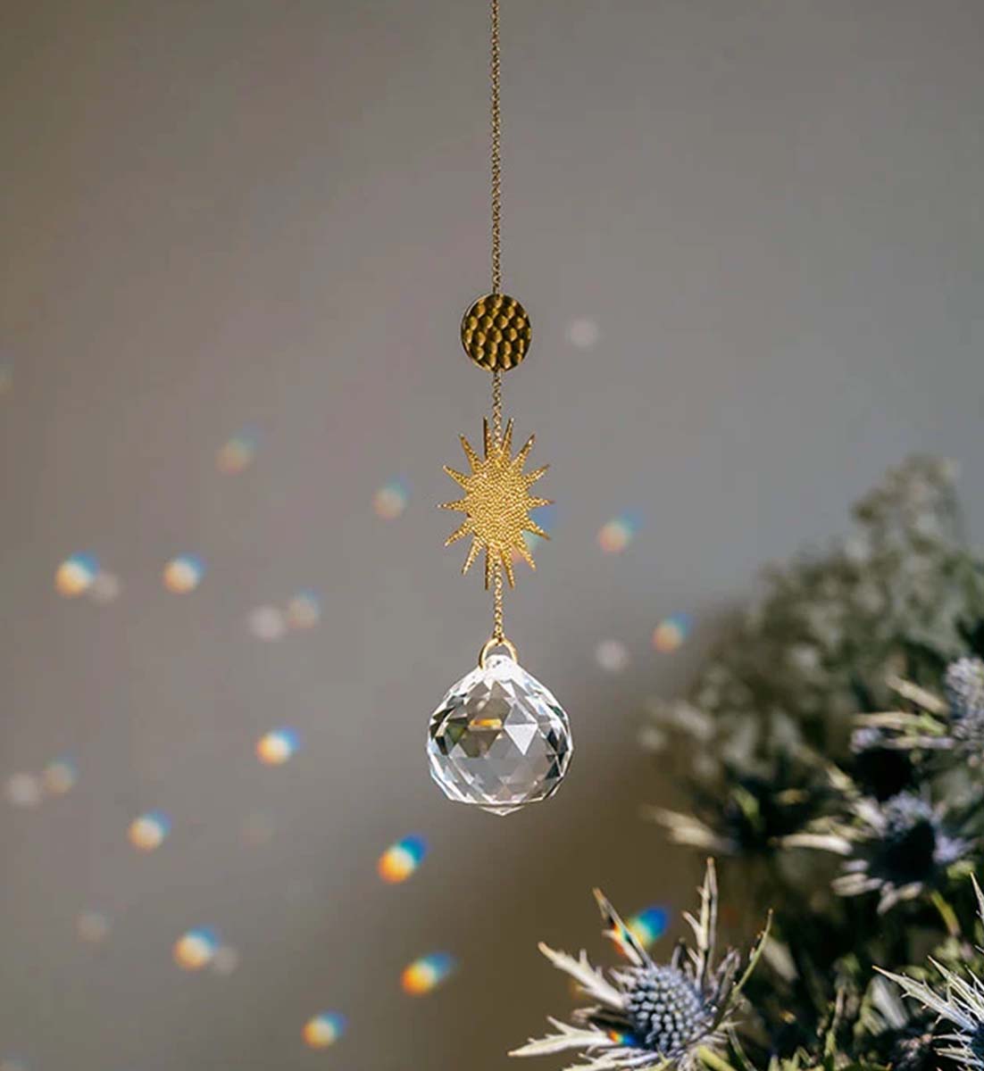 Die handgemachten Lichtfänger Sonne sind dekorative Feng-Shui-Stücke aus Glas, am Fenster aufgehängt, nehmen sie die positive Energie der Sonne auf und laden den Raum mit dieser Energie auf. Die regenbogenfarbenen Lichtpunkte tanzen durch den Raum und verteilen ihre belebende Wirkung.