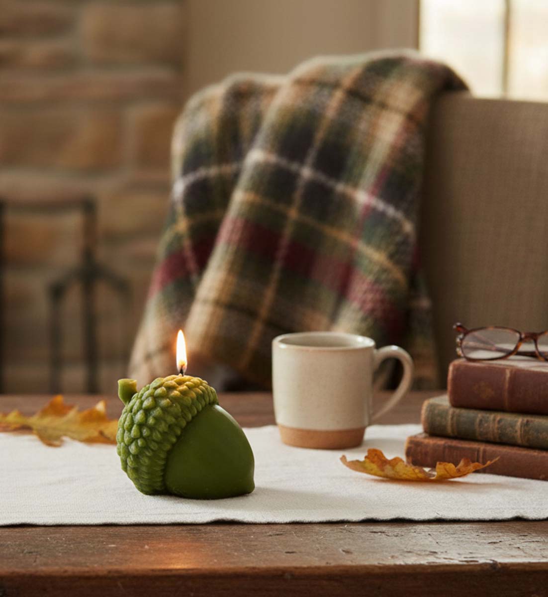 Die detailreiche Eichelkerze wird aus naturreinem Bienenwachs gefertigt und überzeugt durch ihre authentische Form: eine fein strukturierte Kappe und ein glatter Körper.