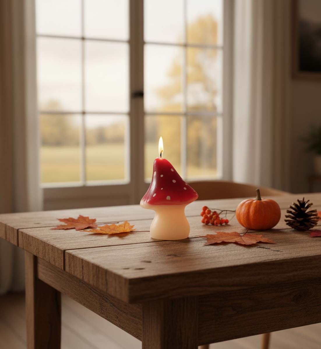 Jede Kerze überzeugt durch liebevolle Details und die typische Pilzform. Perfekt als Dekoration auf dem Tisch, in Herbst- oder Weihnachtsarrangements und besonders schön in Kombination mit unseren Tannenzapfen-Kerzen.